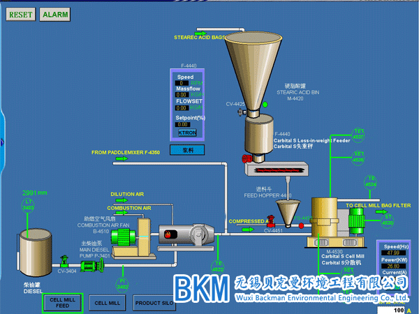 3、PLC根据螺旋铰刀下料的数据调节分散剂下料的重量。(根据干粉比例0.02-0.1%可调)